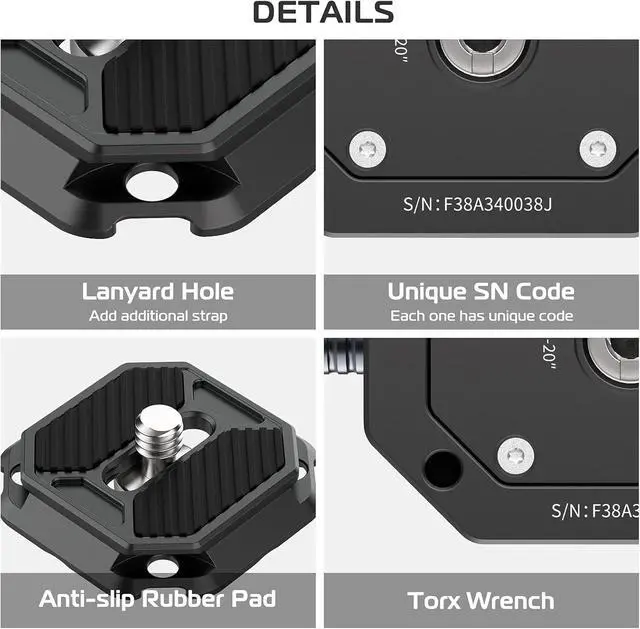 Premium CraftsmanshipCrafted of aluminum alloy and stainless steel, framed with solid mortise and tenon structure, and finished by CNC machining, F38 quick release kit boasts premium quality. It can load up to 15kg/ 33.1 lb.
