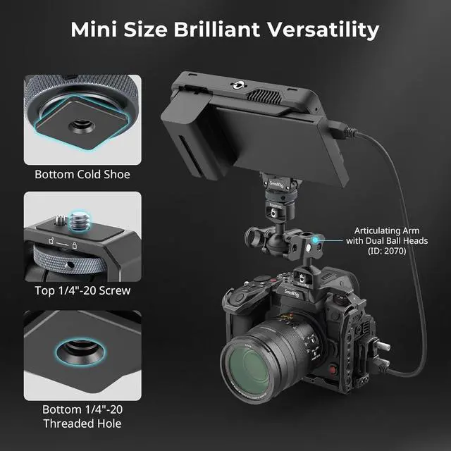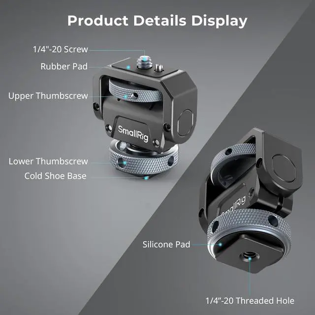 Universal Compatibility: SmallRig Monitor Mount 3809B features a highly compatible cold shoe on the bottom, which fits camera hot shoe or shoe mount on camera rigs such as camera cages or handles. The 1/4"-20 screw features detachable locating pins on the top can attach a field monitor, LED light or other accessories
