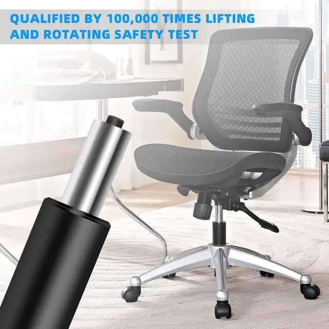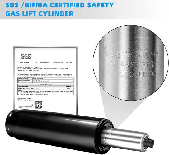 PISTON: SGS & BIFMA Certification safety lift cylinder, which has passed over 100, 000 times of rotation/push/pull/impact test, with no loss of usability function after the experiment, they built with high-quality solid steel that can support maximum weight up to 1000 lbs.