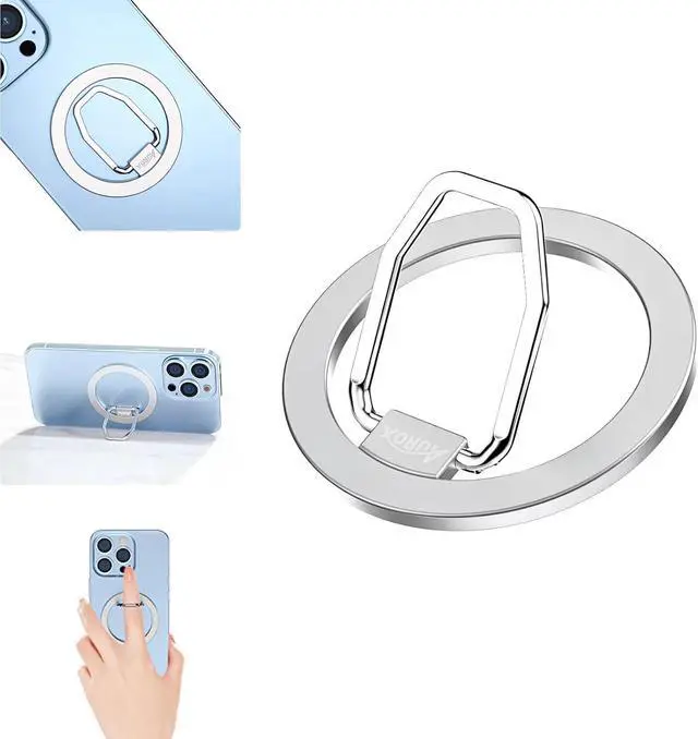 Work for All Phones: For magsafe phone ring holder, it is designed for iPhone 16/15/14/13/12 series. Compatible with iPhone 16 Pro Max/16 Plus/16 Pro/16/15 Pro Max/15 Plus/15 Pro/15/14 Pro Max/14 Plus/14 Pro/14/13 Pro Max/13 Pro/13/13 Mini/12 Pro Max/12 Pro/12/12 Mini, and other phones with Mag-Safe Cases. For iPhone 16/15/14/13/12 series, move magnetic phone finger holder to the back of your phone or magnetic phone case. Auto-align in an instant! For other models phone, attach the metal ring (in the package) to the back of your phone case if you use case. Then stuck the finger phone ring on the metal ring, which is suitable for most smartphones.