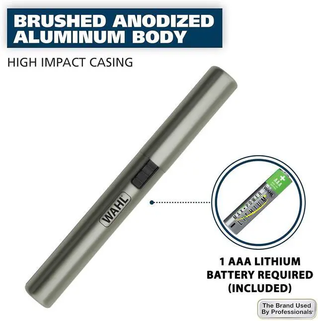 Durable brushed anodized aluminum body ensures a nearly indestructible casing for long-lasting ear, nose, and eyebrow grooming performance