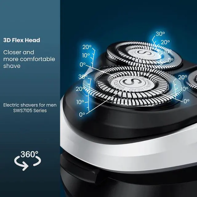 • 360° Floating 3-Blade System for Close ShavingEquipped with a 360° floating 3-blade design, this electric shaver contours to your face for a close, smooth shave every time. Ideal for men who demand a clean and efficient shave