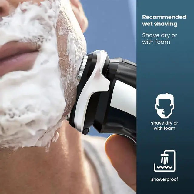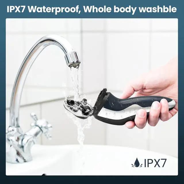 • 100% Waterproof & Easy to CleanFully waterproof (IPX7) and with a detachable head, this electric razor for men face is easy to rinse and maintain. Wet or dry, its always up to you.