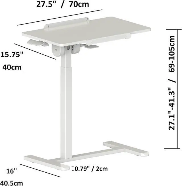 COMFORTABLE WORKING SPACE Ergonomic top ( 27.5" x 15.75" / 70x40cm) fits almost any size of laptop or tablet. Finished in clean white, the tabletop is splash-resistant and easy to clean.