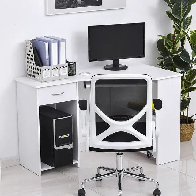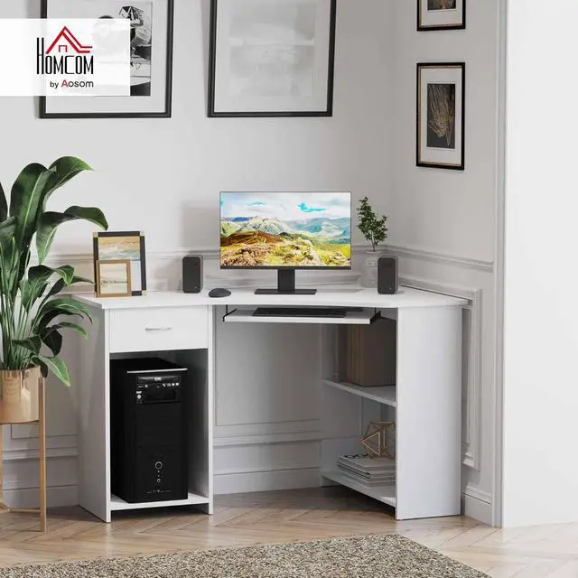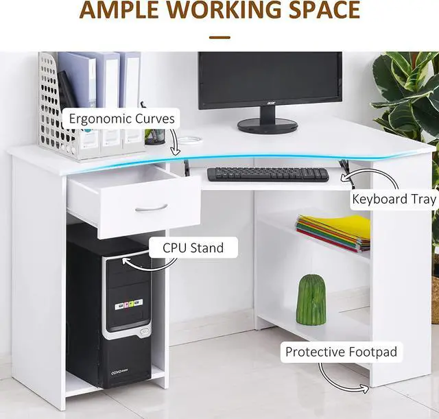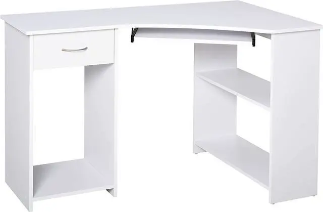 Storage and Work Space: Features two side shelves, a drawer, a large open compartment, slide-out keyboard tray and a flat table-top. Large compartment is suitable for your computer's power tower unit.