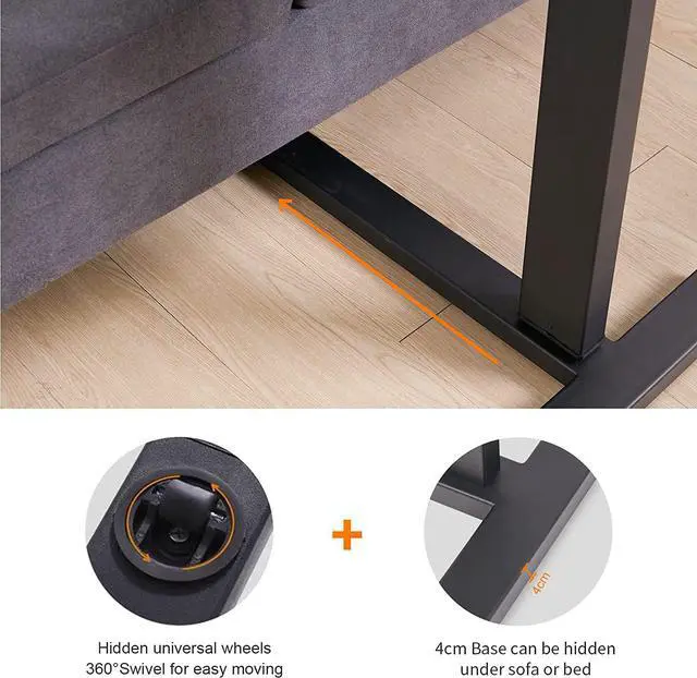 Invisible Hidden Casters - The smooth and quiet 360° rotatin rolling wheels are hidden in the table base. Make the table look slim and won't cause any noise when moving. The base is 4cm thick and 0.5 cm away from the floor so that you can move the table to anywhere you want