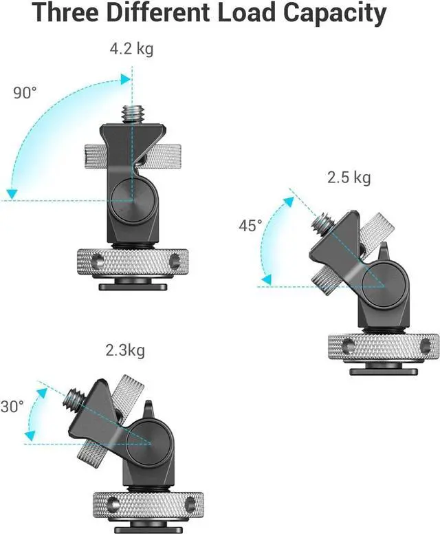 load capacity: 4.2 kg; 45° tilt load capacity: 2.5 kg; 30° tilt load capacity: 2.3 kg.