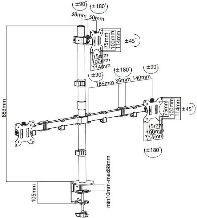 EXCELLENT STABILITY: Mounts to the back of your desk (min 10mm - max 88mm) via a C-clamp or optional grommet mount, the bottom of the base features padding to protect your desk from scratches and keep more stable by held its center of gravity