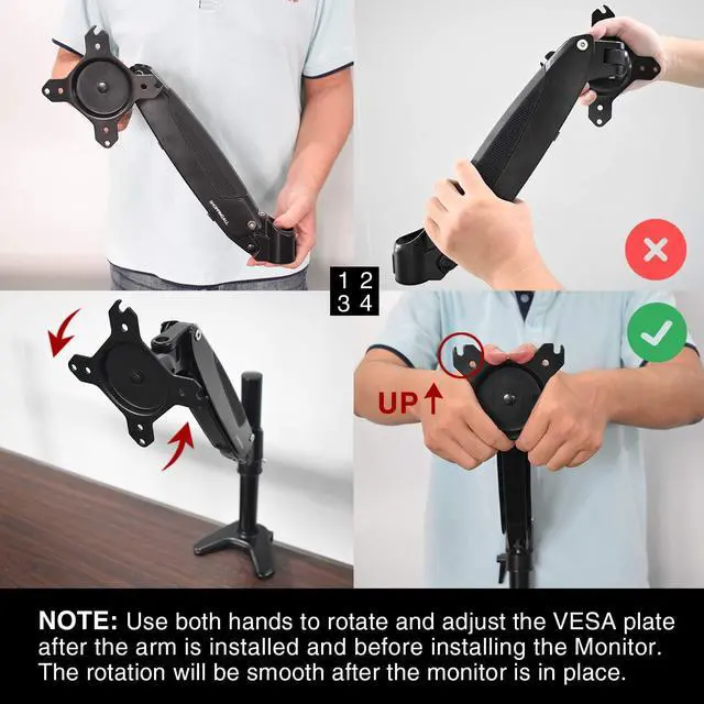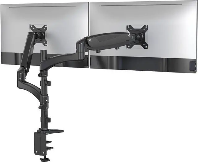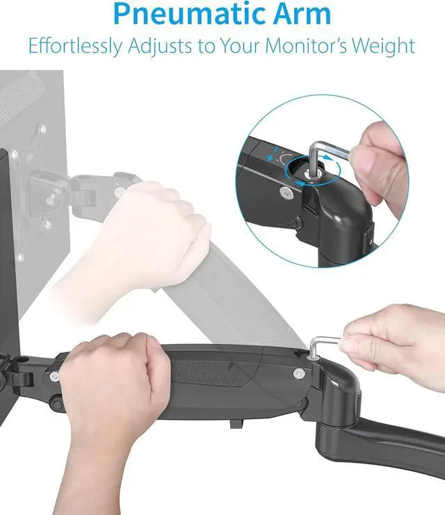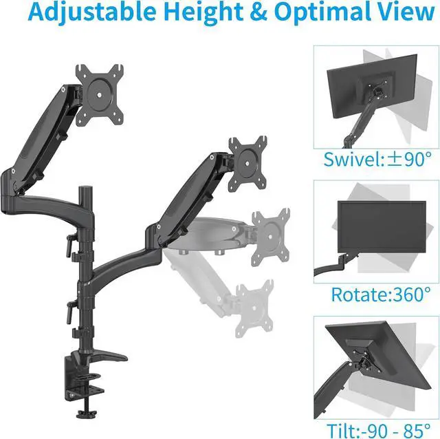 [ULTIMATE FLEXIBILITY] The pneumatic arms provide great flexibility in positioning your monitors. The monitor arms can tilt from +90° to -85°, swivel ±90°, and 360° rotation makes switching between landscape monitor settings to portrait position easy.