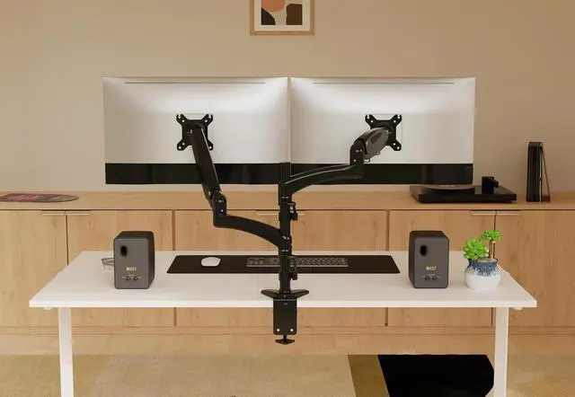 [COMPATIBLE WITH VESA MONITORS] Hold two 15"-32" monitors, Monitor Mount for each arm holds up to a 17.6 lbs/8kg monitor with 75mm x75mm or 100mm x 100mm VESA mounting holes.