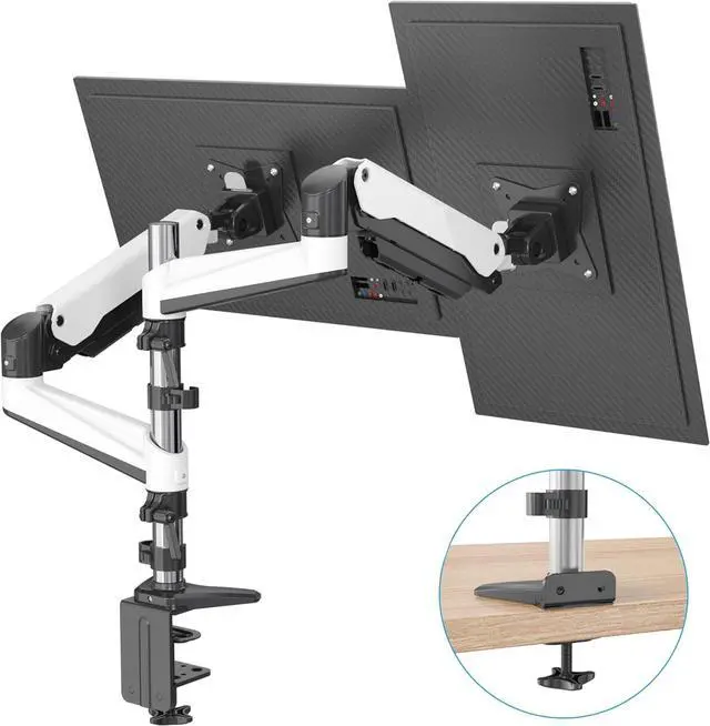 [ERGONOMIC FULL MOTION ADJUSTABILITY] Designed with gas spring system which allows effortless tension adjustment for your monitors. The adjustable arms can tilt from +85° to -90°, swivel ±90°, and 360° rotation. Full motion adjustment provides peace of mind to always have your monitors at an optimal height, helps relieve the strain on your neck and back. The extension arms can be removed for more angle and position adjustability.