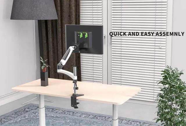 SHOPPINGALL Fully Adjustable Single Gas Spring LCD Monitor Arm Desk Mount Stand with Swing Arm for 15"-32" Monitor, Both Desk Clamp and Grommet Mounting Options in The Box - SA-GM112D-White