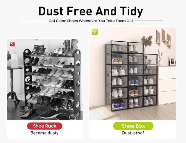 Great Substitute for Shoe Rack: Compared with shoe rack, our design makes your shoes organization neater and tider. Transparent material makes easy access to shoes.