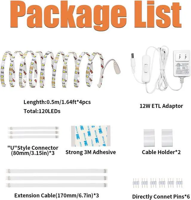 Easy Installation: All installation accessories are included, No tools required. Install light bars by yourself in minutes, just clean - stick on -connect. Backed with strong adhesive tape, screw-free to protect your furniture.