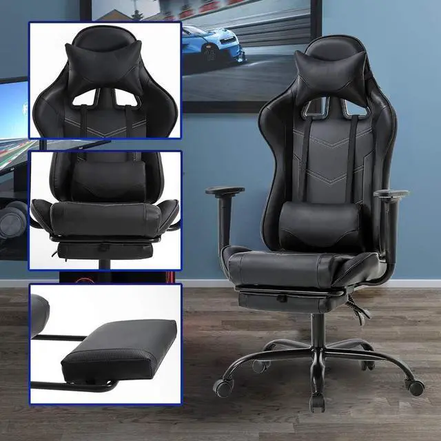 OMFORT FROM EVERY ANGLE - Our brand-new ergonomic racing chair is thickly cushioned for maximum comfort, whether youre spending long hours at the office, in front of the computer, or gaming. Covered with breathable premium PU leather, the chair is equipped with freely adjustable lumbar support and a headrest pillow to protect your spine and neck, while the adjustable reclining feature allows users to lock in any reclining position, from 90-155°.