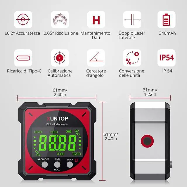 Accurate Digital Angle GaugeXUNTOP Digital Angle Finder Level Box with Electronic Laser made of aluminium with dual function inclination box and laser to meet your various needs. 4*90° measurement can be used at many angles and can be zeroed at any angle for comparison.