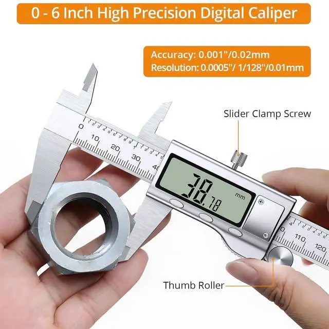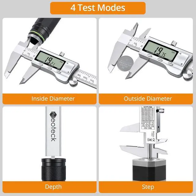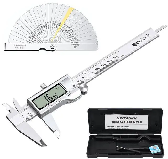 Digital Caliper Set: Experience accuracy with a measurement range of 0- 6 inch (0- 150mm), a resolution of 0.0005 inch/(1/128 inch)/ 0.01 mm, and an impressive accuracy of 0.001" / 0.02 mm. Neoteck caliper ensures precise measurements for inside, outside, depth, and step dimensions, making it a reliable companion for your projects