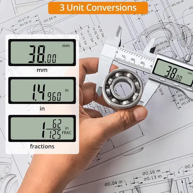 3 Units Conversion: Caliper measuring tool supports seamless conversion between fractions, inches and metric units, allowing for easy adjustments to suit your specific measurement requirements. This versatile conversion capability enhances flexibility and convenience, ensuring accurate readings in any desired unit of measurement