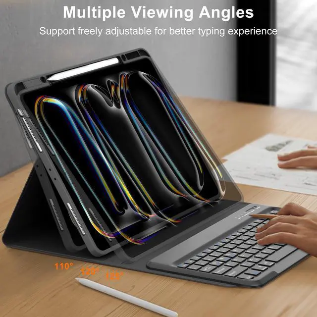 [(Premium Leather with Multi-View Angles Case for iPad 13 inch)] The high quality iPad Pro 13 inch case 2024 is made of premium vegan exterior composition leather and soft anti-slip lining, a protective keyboard cover gives your iPad 360degfront and back protection from accidental scratches. And iPad 13 Pro case has multiple viewing angles, you can choose your optimal angle to use your iPad. Type, sketch, view and read--if you need to get something done on your iPad, choose from four versatile use modes to get it done.
