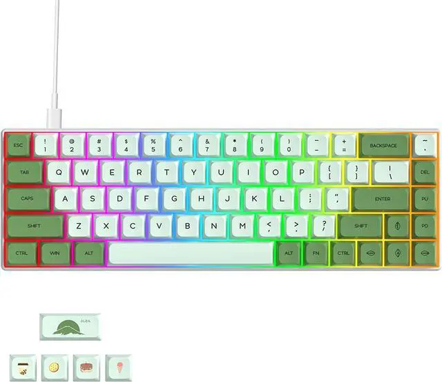 Portable 65% Mechanical KeyboardOwpkeenthy RGB Mechanical Keyboard has a minimalist 65 percent 68 keys layout, boasts both practicality, the full-function and compact characteristics of keyboard and it also geared with arrow keys and frequently used control keys.