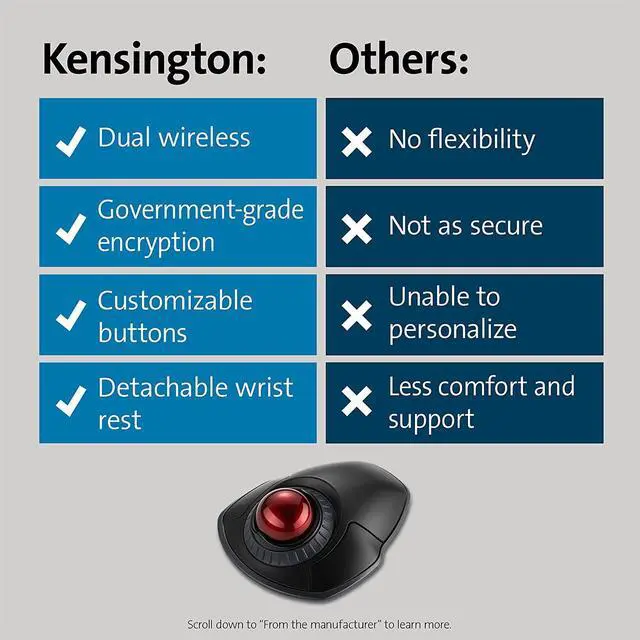 Free KensingtonWorks downloadable software provides a personalized experience, giving you the ability to assign a variety of functions (including shortcuts) to the buttons, and adjust cursor and scrolling speed