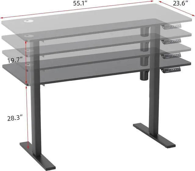 Large Workspace: The electric standing desk comes with a spacious two-piece tabletop measuring 55 x 23.6, smooth and anti-scratch, which provies a large space for your monitors, laptops, office files or printer. 2 cable management holes on the desk, help keep the desk panel neat and tidy.