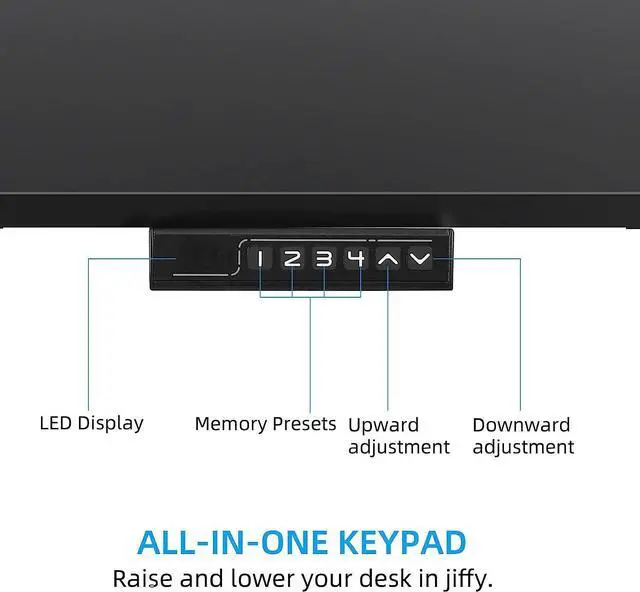 Memory Preset Controller: The simple controller features memory presets for saving your ideal height settings. 4 memory preset options for easy adjustment. The modern and simple look of the standing desk will give a new view to your living room, bedroom, study and can match your office environment well.