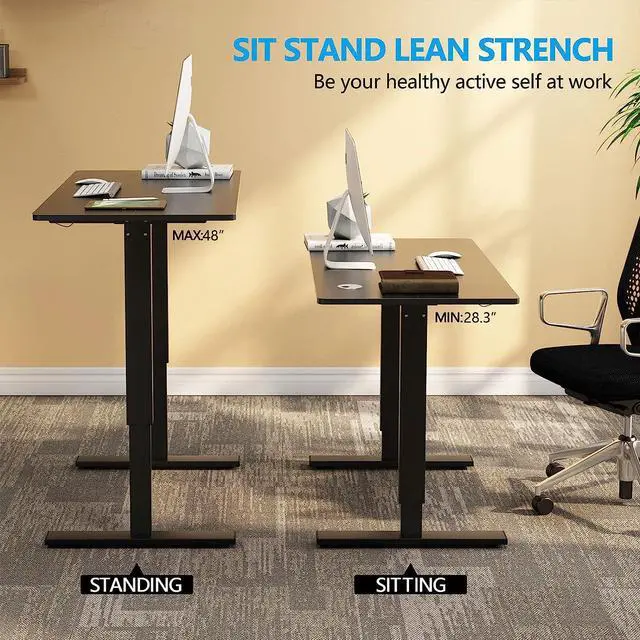 Electric Ajustable DeskHeight of the electric standing desk with premium single motor can be adjusted from from 28.3" to 47.4", at a speed of 1"/second with low noise while running. It is a perfect choice for you study or working by setting the 4 different heights.