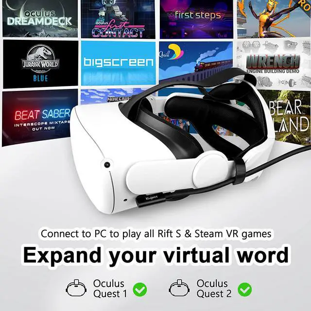 Experience more games: The Kuject link cable connects to Quest 1/2 to PC and lets you to play all Rift S and Steam VR games. Kuject accessories of Oculus allowing you to explore a broader virtual world