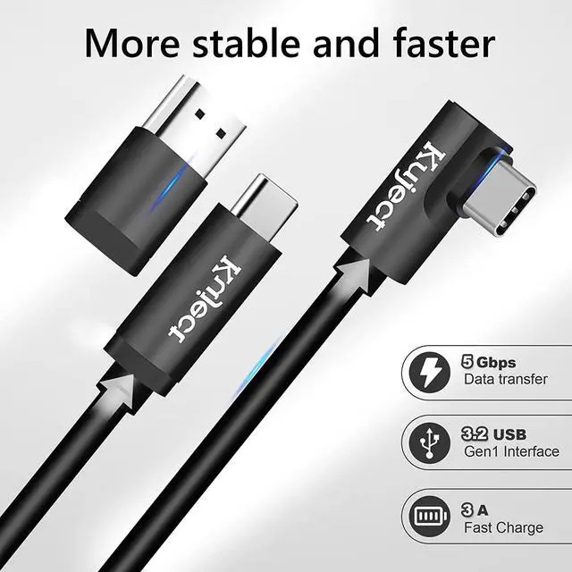 USB 3.2 interface: Compatible with usb 3.0 / 3.1 gen1/ 3.2 gen1, and designed with 90° which can better work with oculus quest headset. The additional USB-A transfer port makes it compatible with more devices