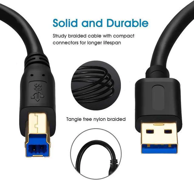USB 3.0 Male (A) to Male (B) Cable, Super Speed Data Transfer Printer Scanner Lead.