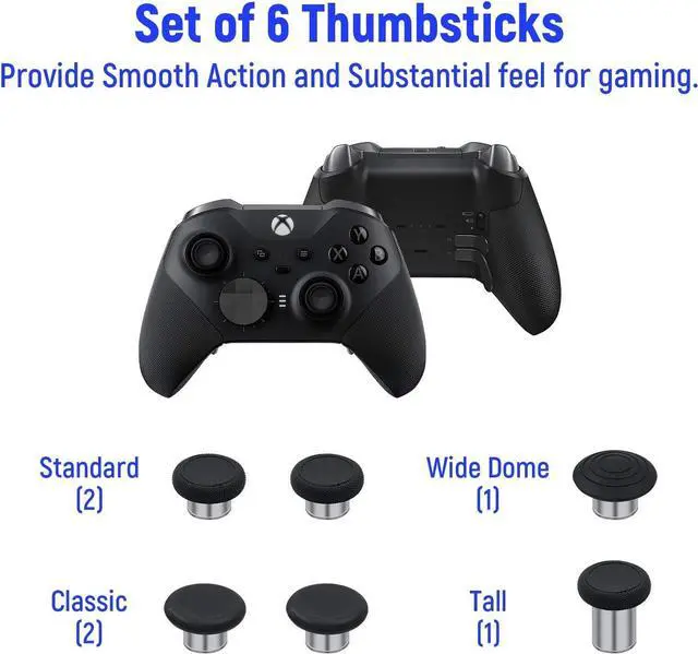 - Rubberised and metal material thumbsticks provide smooth action and subst