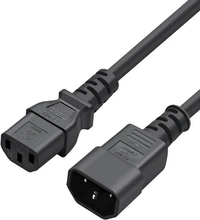 Connectors: IEC-320-C14 (male) to IEC-320-C13 (female); 18 AWG power cord is constructed with a 3 conductor SJT cord in a bendable PVC jacket with molded strain relief connectors