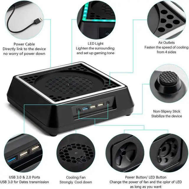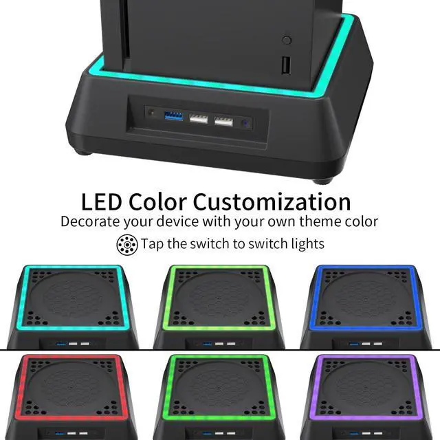 Fancy Color LED Gaming LightBuilt-in intelligent chip, Mviioe for xbox series x cooling stand has Unique RGB light design including 6 monochromes and 1 mixed color. With an independent touch switch, this cooling fan for xbox series x can give you a extremely cool gaming experience.