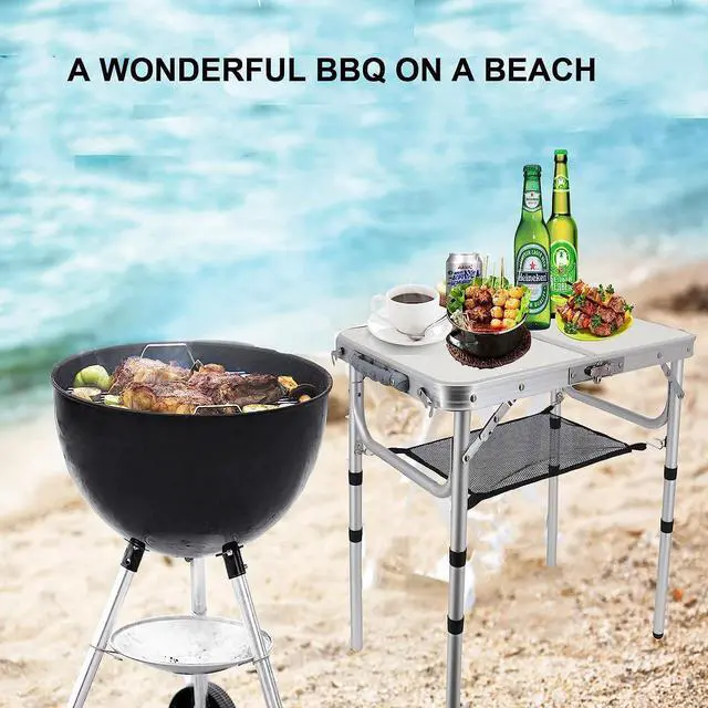 Wide Applicaitons- It acts as a side table for your camping chair, for park picnics, on your bed or you can take it to the beach, or as a portable little coffee table for your family room, a game table at the park or an extra table for games when guests come over, as a TV dinner table table on the floor, store in the shower, on a twin bunk, RV etc. It has a net which you can attach underneath, where you could put things like sunglasses, suncream, magazines etc.