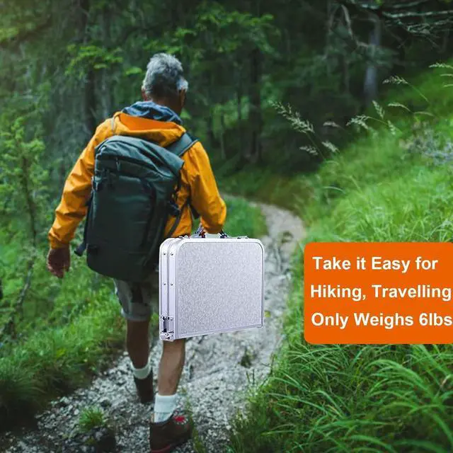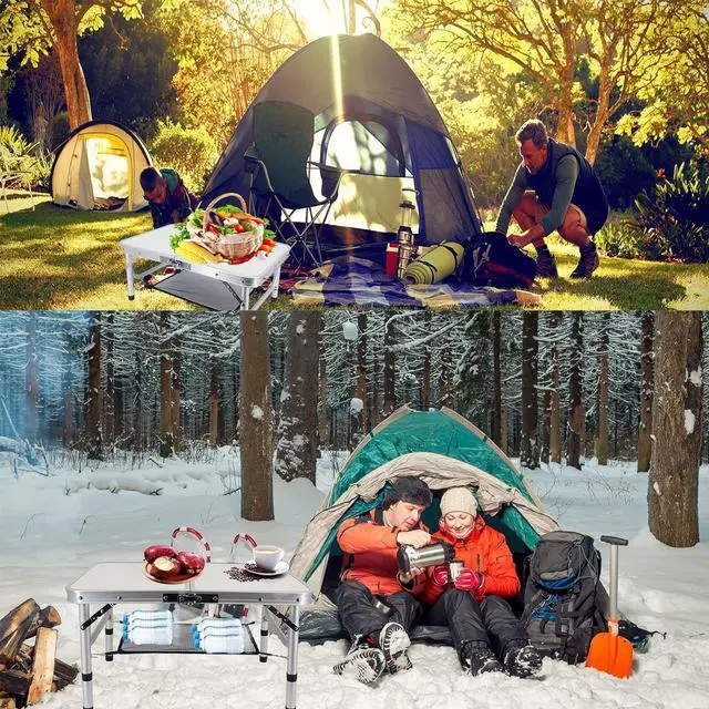 Small Folding Table-The surface of SearQing foldable table is 24in x 16 in, and the fold side is 12in x 16 in. it's a wonderful, portable folding table, pretty easy to set up. The fold up table has 3 adjustable heights which are 10" in low, 20" in medium, and 24" in full extended. The pack size is 16in x 12in x 2.5 in when folded in half. The maximum loading weight of this camping table is 60 pounds.