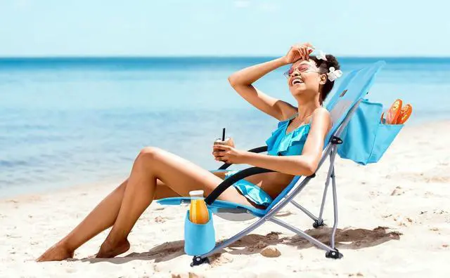 UPGRADED COOLER BAG: Want a cold drink or fresh food? Go check the cooler bag on the back of the chair. With this new feature, you can easily store your drink and food with ice while enjoy the sunshine and sea breeze with Nice C beach chair. Upgraded Large size - 12.3 x
