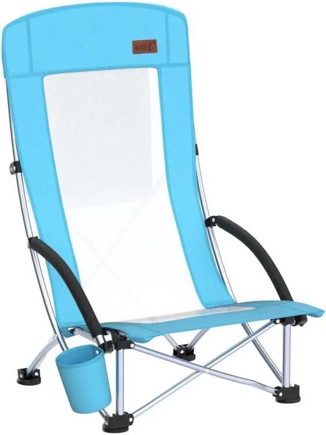 COMFORTABLE DESIGN: Nice Cs high back beach camping chair is made with an orthopedic recommended ergonomic design that gives you maximum comfort. It comes with a 30 height back support so you can rest your head and neck comfortably. The breathable polyester seat allows for air flow so you stay comfortable during hot climates. The low bottom seat design allows you to stretch and relax your legs easily.