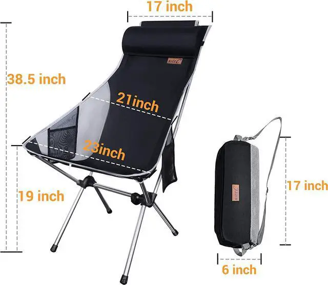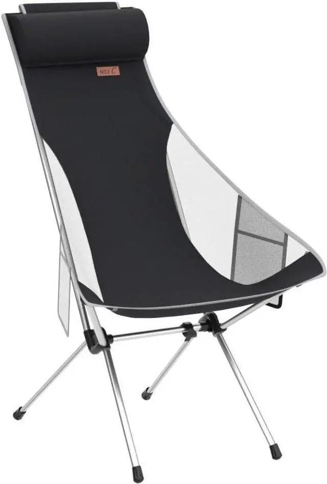 COMFORTABLE DESIGN: Nice Cs high back camping chair is made with an orthopedic recommended ergonomic design that gives you maximum comfort. It comes with a detachable pillow so you can rest your head and neck comfortably. The breathable polyester seat allows for air flow so you stay comfortable during hot climates. Side pockets are attached for easy storage for your water, phone, or snacks. Take this seat anywhere with you: camping, hiking, picnics, festivals, etc.