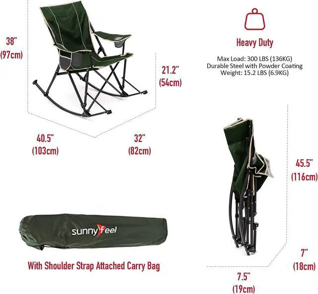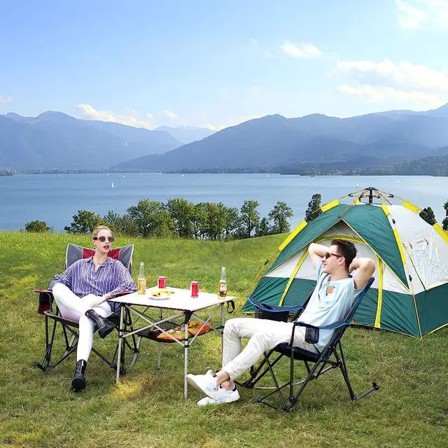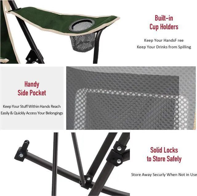 Easy-Peasy: Setting this portable rocking camping chair up is effortless and fast. You only have to take it out from the shoulder straps attached carry bag and pull the frame apart, and Ta-Da! Here you go - now you can enjoy this supreme comfy outdoor folding chairs and easily transport to camp, lawn, concerts and festivals.