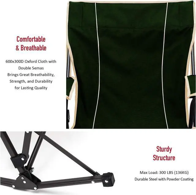 Built to Last: The sturdy steel frame construction affords up to 300 lbs (136 KG) weight capacity. The double-seam 600D oxford fabric has great strength, durability and breathability.