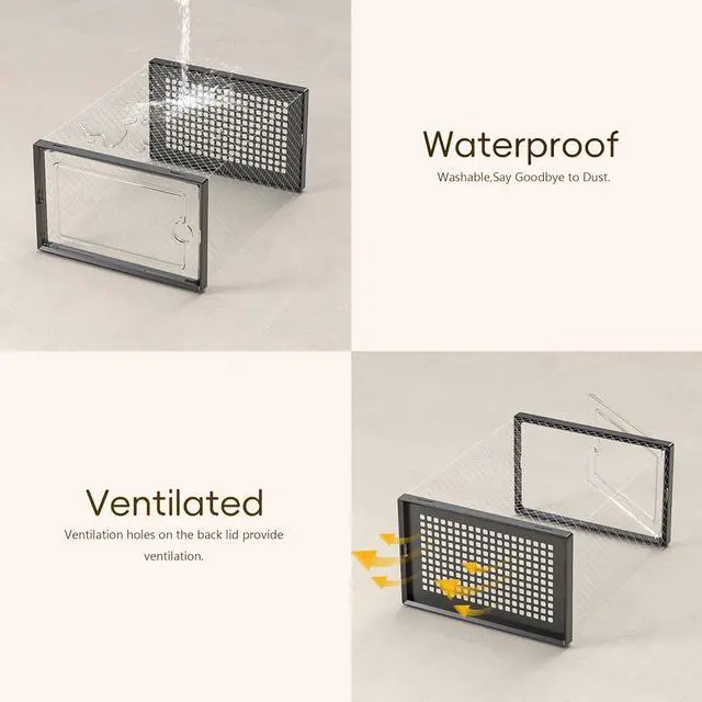 Improved details for better products: The improved frame of the shoe box is thicker and less prone to breaking. The shoe box body is more stable and less prone to deformation. The design of ventilation holes in the front and back doors allows air circulation.