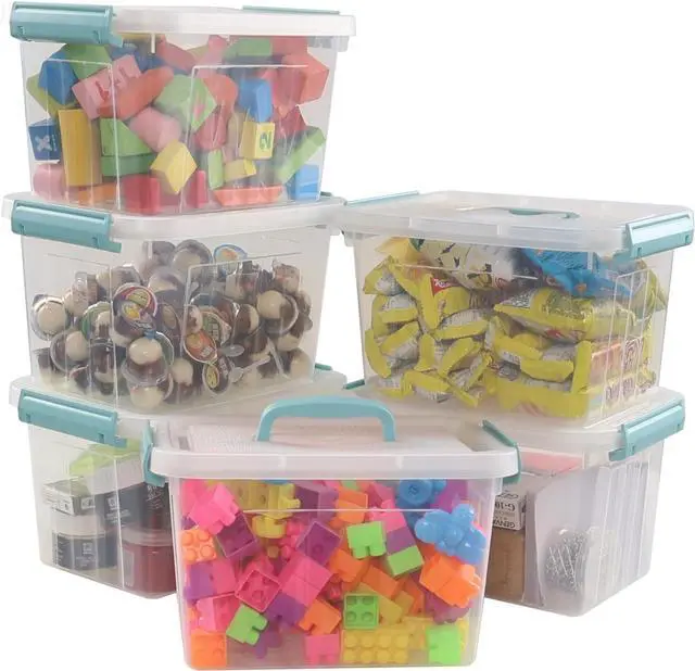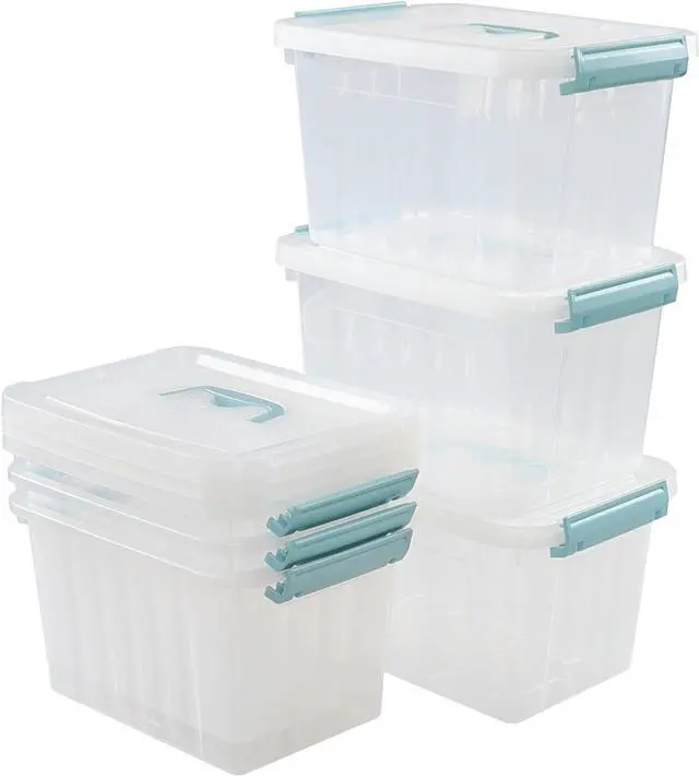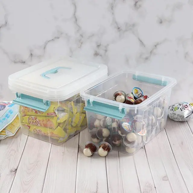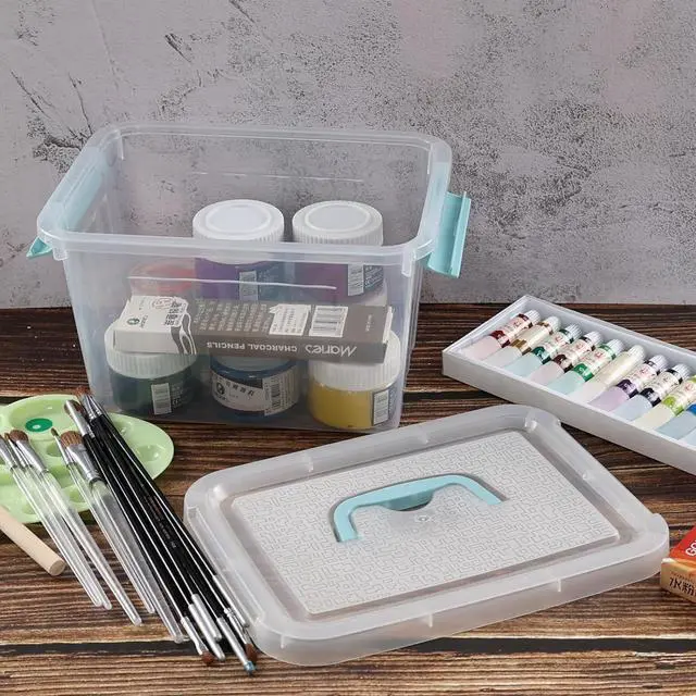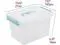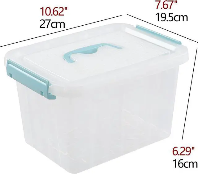 There is a handle on the top for easy carrying the plastic storage bin, and two latches on both side locking the lid make contents more securely