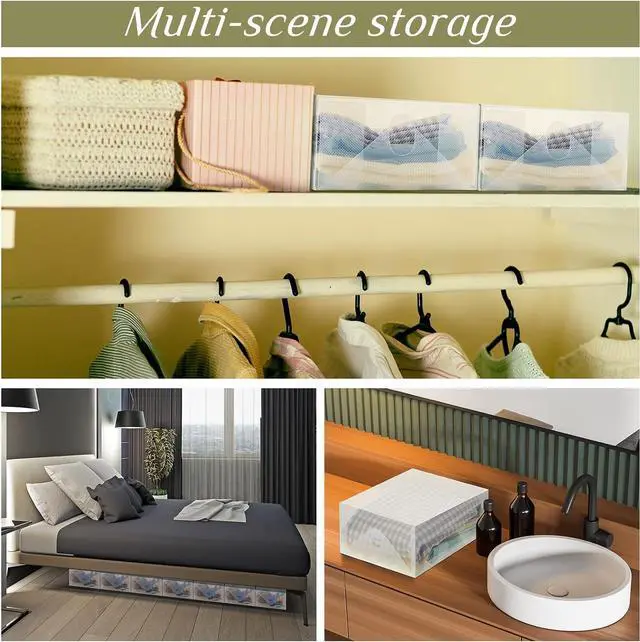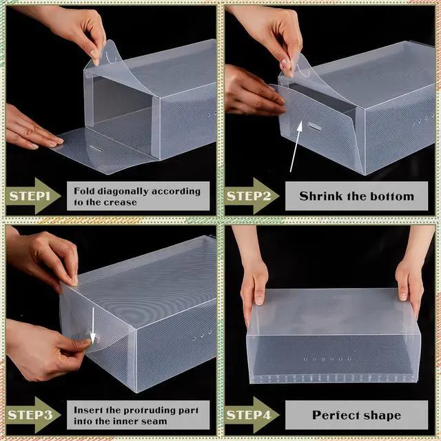 Space Saving Design: our clear stackable shoe boxes are foldable, so you can fold the box flat to place in any corner of your room, bedroom, bathroom, laundry room, kitchen, dormitory, garage and so on, helping you to save many space