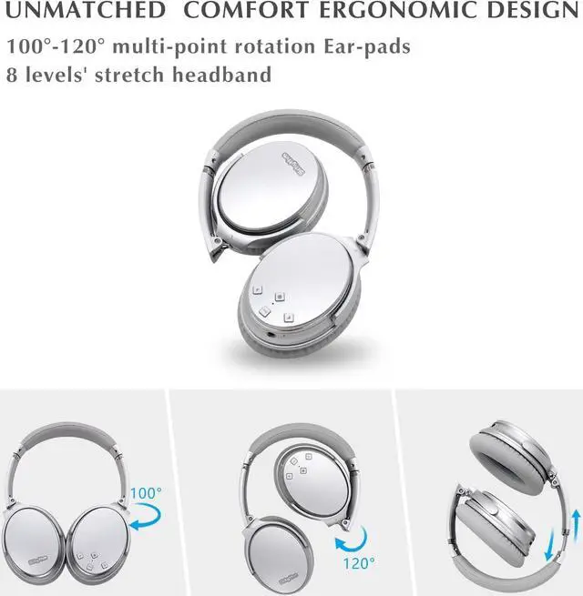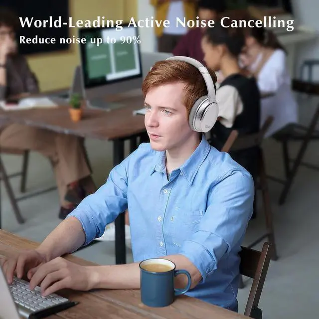 • World-Leading Digital Active Noise Cancelling (ANC): Advanced noise cancellation technology effectively quells 90% stable low frequency background noise when in noisy environment airplane/subway/car/office/factory/crowd etc.(not 100% sound canceling.).ANC works well in both wired and wireless mode.ANC ON,World OFF.To be better and better noise reducing is our goal