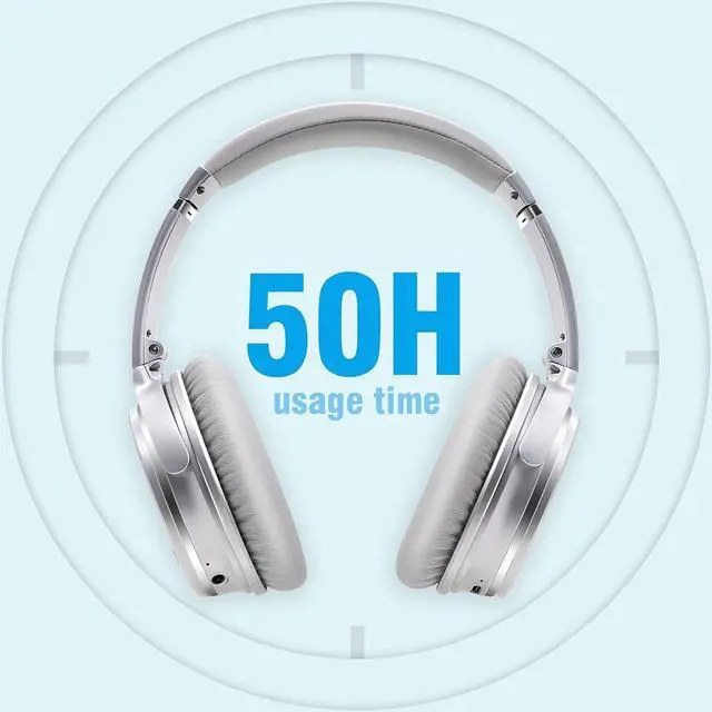 • Fast Charge & 50+Hours Enjoyment: Charging 10 minutes to use 3 hours.High efficiency and energy-saving Bluetooth 5.0 to prolong playtime up to 50 hours after 1-2 hours full charge.Built-in sensitive microphones for easy communication under Bluetooth mode.Support Siri voice control.3.5mm stereo audio cable as back-up when in low battery.Extra Cha