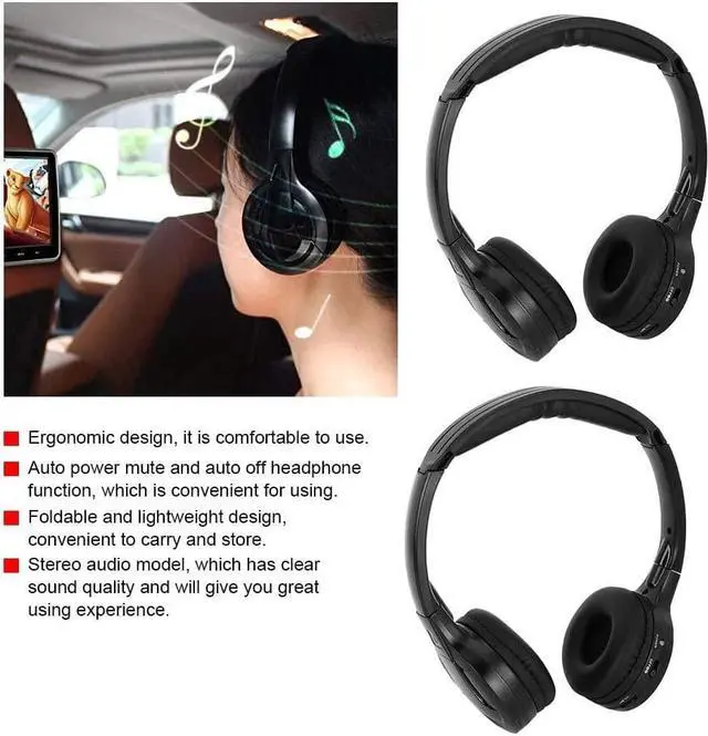 Dual Channel Universal FitCar EarphoneAchieve universal compatibility with our Dual Channel Foldable Headphones. These IR headphones are designed to perfectly fit most cars' TV/DVD players with an infrared audio system, making them a wonderful accessory for your on-the-go entertainment.