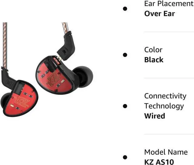 5 Balanced Armature Driver KZ AS10 Earphone: With 5 balanced armature driver on this KZ in ear monitors, 5 balanced armatures response from Low to High frequency, add more definition and show more details in music, provide a balanced sound feature.