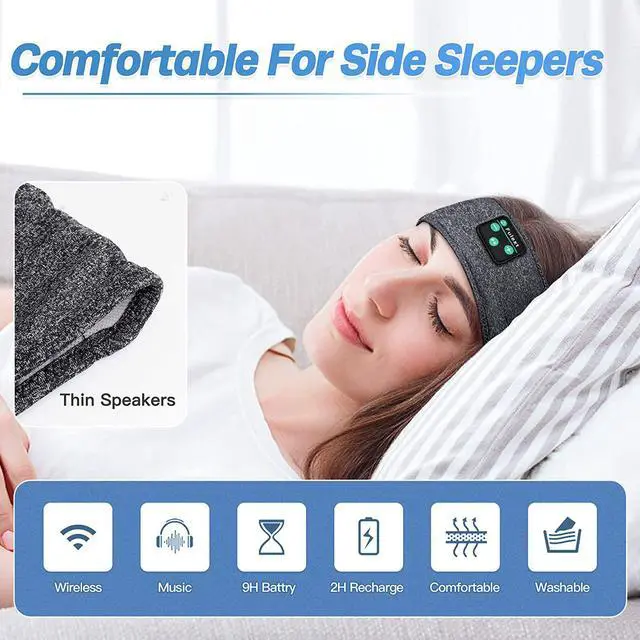 Designed for Sports Lovers & Music SleeperSweat-absorbing inner fabric touches smooth and great for sports and falling in sleep. The ultra-thin flat headphone speakers are comfortable for lying down or sleeping on your side, wont press the ears.