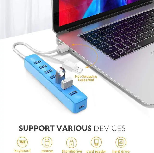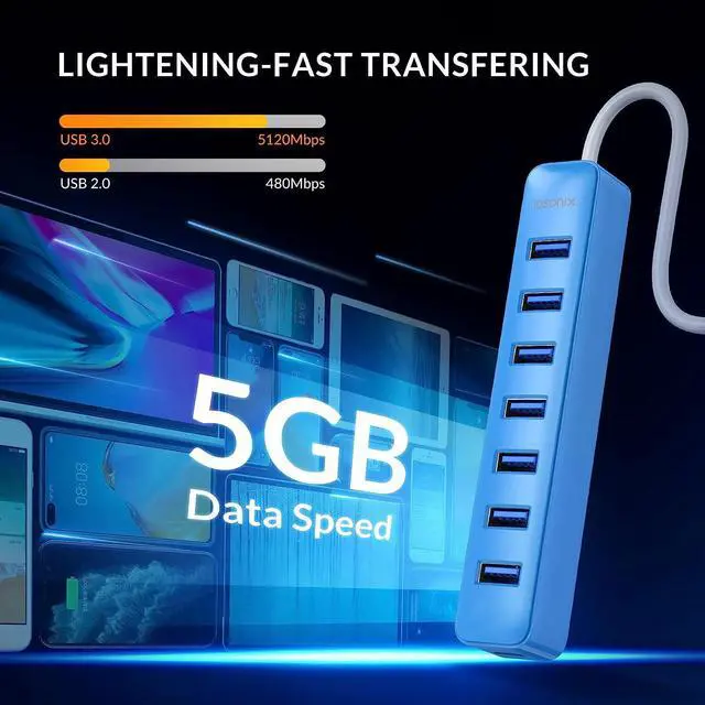 High Speed TransmissionThe usb hub 3.0 sync data at blazing speeds up to 5Gbps, which is more than 10 times faster than USB 2.0, fast enough to transfer an HD movie in seconds.